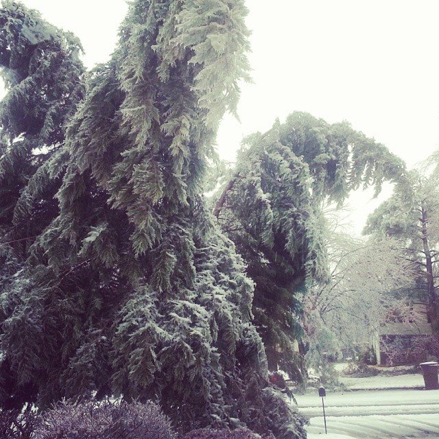 I spent the day having mild panic attacks about the snapping branches I could hear echoing all around the house. When we moved into this house, we knew that we needed to get rid of most of the trees on the property because they would eventually fall on the house. Unfortunately, we were only able to remove two of them before this ice storm. On the upside, we didn’t finish removing all of the branches and sticks from when we cut down the two trees. I would have been annoyed if we had cleared the yard up only to have more branches and trees fall.